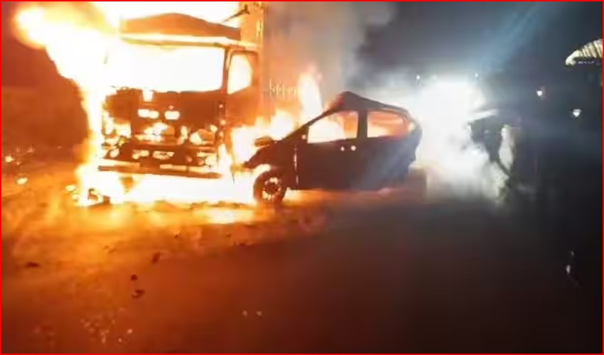 गुजरात के कच्छ में भीषण सड़क हादसा: चार वाहनों की टक्कर के बाद लगी आग, बच्चे समेत दो की मौत