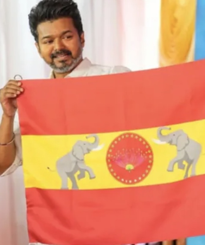 तमिल सुपरस्टार थलापति विजय ने आज चेन्नई के पनियूर में पार्टी मुख्यालय में अपनी नव स्थापित राजनीतिक पार्टी, तमिलगा वेट्रीकज़गम (टीवीके) के झंडे का लांच किया।