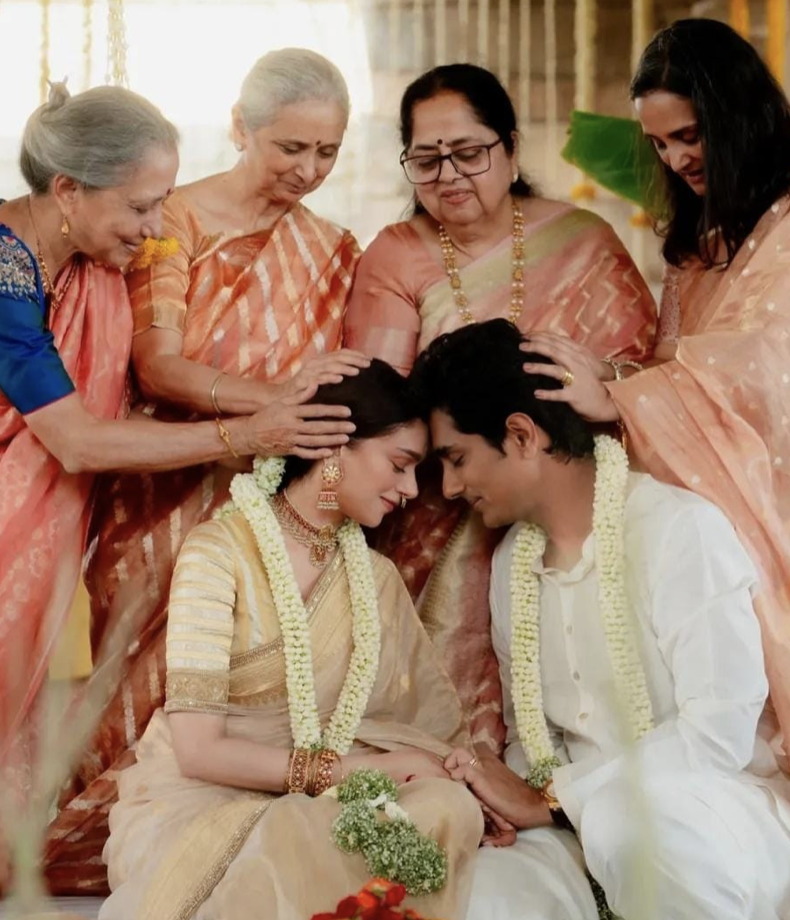 अदिति और सिद्धार्थ दोनों ही अपनी शादी के जोड़े में बेहद खूबसूरत लग रहे हैं। इस पोस्ट के बाद हर तरफ से उन्हें बधाई मिल रही है। उनके फैंसबहुत लम्बे समय से इंतजार कर रहे थे कि दोनों जल्दी शादी के बंधन में बंध जाए और फाइनली आज सभी इस खबर से बहुत उत्साहित नजर आ रहेहैं।