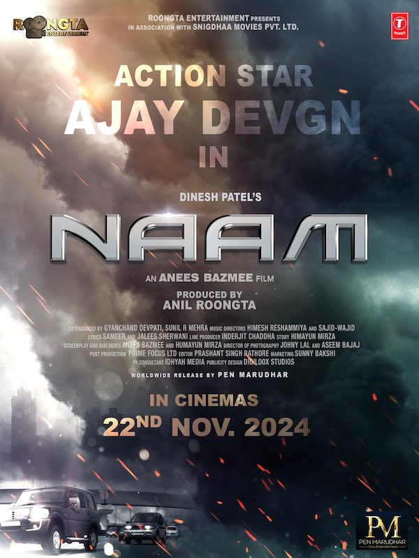 अजय देवगन की नई फिल्म का 'नाम' है। इसका निर्देशन अनीस बज्मी करेंगे। अजय देवगन और अनीस बज्मी की मनोवैज्ञानिक थ्रिलर फिल्म 'नाम' 22 नवंबर को सिनेमाघरों में रिलीज होने के लिए तैयार है। यह अजय के साथ अनीस की चौथी फिल्म होगी। इससे पहले वे 'हलचल', 'प्यार तो होनाही था' और 'दीवानगी' में काम कर चुके हैं।