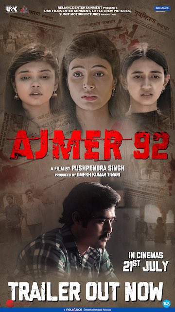 रिलायंस एंटरटेनमेंटस ने अपनी आगामी फिल्म, अजमेर 92, काट्रेलर रिलीज़ किया हैं. ये फिल्म एक सच्ची घटना पर आधारित है. 1992 में अजमेर में एक बड़े कांड का खुलासाहुआ था.