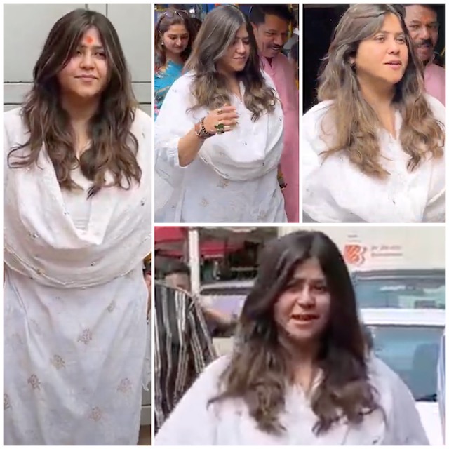 अपने खास अंदाज में मंदिर पहुंची एकता कपूर, वह आज एक साधारण लेकिन खूबसूरत सफेद सूट पहना, जिसमें वह शालीनता और विनम्रता बिखेररही थीं। अपने व्यस्त शेड्यूल के बावजूद एकता कपूर ने प्रशंसकों और पैपराज़ी के साथ तस्वीरें खिंचवाने के लिए रुकी और सभी को थैंक यू भीबोला.