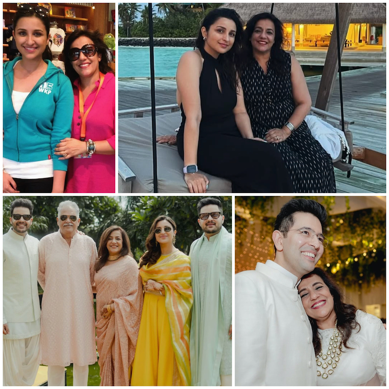 परिणीति ने अपनी मम्मी के साथ फोटो शेयर करते हुए सोशल मीडिया पर लिखा, "फ़िल्म: परिणीति चोपड़ा निर्माता: रीना चोपड़ा, निर्देशक: रीनाचोपड़ा, संवाद (कैसे बोलें): रीना चोपड़ा, एक्शन (कैसे चलें): रीना चोपड़ा, खाद्य एवं पेय पदार्थ (आजीवन): रीना चोपड़ा, मेरे निर्माता, निर्देशक - मूल रूप से मेरे सब कुछ को जन्मदिन की शुभकामनाएँ! परिणीति, सहज और शिवांग नाम की यह फिल्म आपके बिना कभी रिलीज नहीं होती (और पापा, हां, लेकिन यह उनका जन्मदिन नहीं है)। सबसे प्यारी, हँसमुख और सचमुच सबसे बुद्धिमान महिला जिसे मैं जानती हूँ। माँ हम आपको बहुत प्यार करते हैं!"