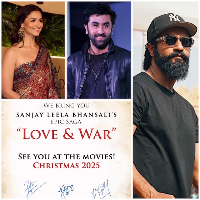 भंसाली प्रोडक्शंस के आधिकारिक हैंडल ने फिल्म की पुष्टि की, इसमें कहा गया, “#SanjayLeelaBhansali की अगलीEPIC गाथा 'LOVE & WAR' में #RanbirKapoor @aliaa08 और @vickykaushal09 अभिनीत, क्रिसमस2025 पर सिनेमाघरों में मिलते हैं! @prerna982 #LOVEandWAR”