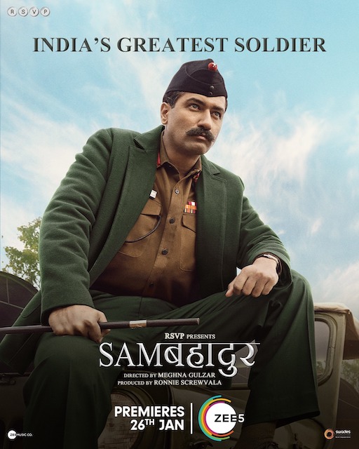 विक्की कौशल अभिनीत फिल्म 'सैम बहादुर' देश के पहले फील्ड मार्शल सैम मानेकशॉ के जीवन पर आधारित है। इस फिल्म में उनके सेना प्रमुख बनने के शुरुआती दिनों से लेकर उनकी सेवानिवृत्ति तक की शानदार यात्रा को दिखाया गया है। अब यह फिल्म ओटीटी प्लेटफॉर्म जी5 पर 26 जनवरी को गणतंत्र दिवस के मौके पर रिलीज होने के लिए पूरी तरह तैयार है। यह मूवी मेघना गुलजार के निर्देशन में बनी है और रोनी स्क्रूवाला के आरएसवीपी प्रोडक्शन द्वारा निर्मित है।