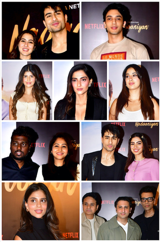 नादानियाँ की प्रीमियर एक शानदार इवेंट था, जिसमें कई बड़ी सेलिब्रिटीज ने रेड कार्पेट पर अपनी मौजूदगी दर्ज कराई। इस इवेंट में सारा अली खान,इब्राहीम अली खान, जाह्नवी कपूर, रेखा, खुशी कपूर और सुहाना खान जैसे प्रमुख हस्तियाँ शामिल हुईं, जिन्होंने इस बहुप्रतीक्षित स्क्रीनिंग में चार चांदलगाए। उनके साथ ही सोहा अली खान, बोनी कपूर, कुणाल खेमू, अर्जुन कपूर, दीया मिर्जा, सुजैन खान और अन्य कई प्रसिद्ध शख्सियतों ने इस इवेंटको और भी ग्लैमरस बना दिया।