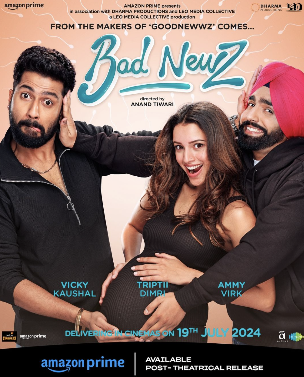 गुड न्यूज तो आपने बहुत सुनी होंगी, लेकिन अब तैयार हो जाइये 'बैड न्यूज' के लिए, जिसे सुनाने के लिए करण जौहर बिल्कुल रेडी हैं. फर्स्ट लुक भीजारी कर दिया गया है. धर्मा प्रोडक्शन के बैनर तले बनी 'बैड न्यूज' फिल्म का अनाउंसमेंट वीडियो रिलीज किया गया, जहां बड़ी फ्रेश स्टार कास्ट देखनेको मिल रही है. इसका प्री-अनाउंसमेंट वीडियो जितना फनी था, उतना ही मजेदार फिल्म का फर्स्ट लुक भी है.बैड न्यूज में विक्की कौशल के साथपहली बार एम्मी विर्क और तृप्ति डिमरी दिखेंगें. तीनों की मजेदार जोड़ी अभी से फैंस को एक्साइट कर रही है. विक्की कौशल की चार्मिंग अंदाज, एमीका पंजाबी स्टाइल और एनिमल से नेशनल क्रश बनी तृप्ति को साथ देखना फैंस के लिए किसी ट्रीट से कम नहीं होगा.