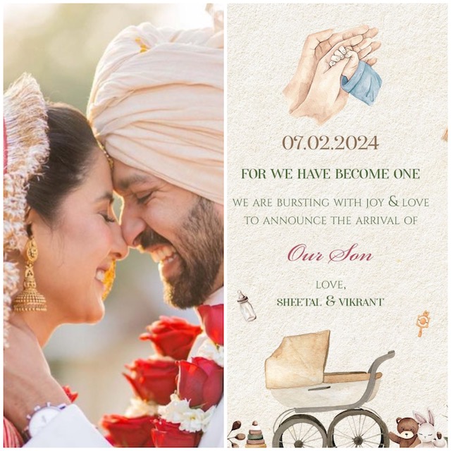 उन्होंने एक प्यारे पत्र की तस्वीर के साथ अपना उत्साह शेयर किया। तस्वीर पर नोट में लिखा है, "07.02.2024। क्योंकि हमएक हो गए हैं। हम अपने बेटे के आगमन की घोषणा करते हुए खुशी और प्यार से फूल रहे हैं। शीतल और विक्रांत को प्यार।"