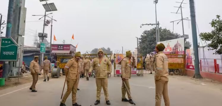 सोमवार को अयोध्या में राम मंदिर में प्राण प्रतिष्ठा समारोह के लिए बहुस्तरीय सुरक्षा व्यवस्था की गई है, जिसमें 10,000 सीसीटीवी कैमरे लोगों की गतिविधियों पर नजर रख रहे हैं और सादे कपड़ों में पुलिसकर्मी भी निगरानी के लिए तैनात किए गए हैं। अयोध्या के धर्मपथ और रामपथ से लेकर, जहां भक्तों की भारी भीड़ देखने को मिलती है, हनुमानगढ़ी इलाके और अशर्फी भवन रोड की सड़कों पर पुलिसकर्मी गश्त करते देखे जा सकते हैं.