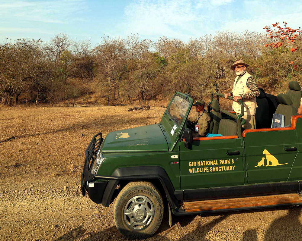प्रधानमंत्री ने गिर में सफारी का आनंद लिया, एशियाई शेरों के आवास के संरक्षण पर आदिवासियों को सराहा