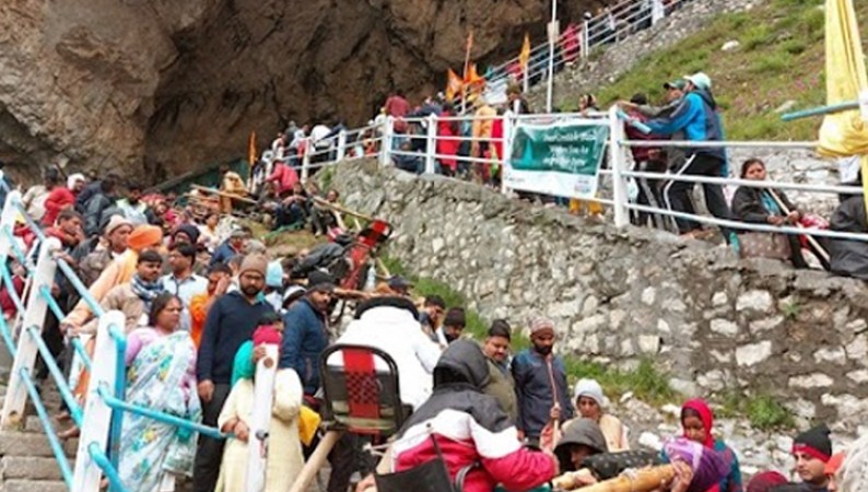 1 जुलाई को 62 दिवसीय वार्षिक तीर्थयात्रा शुरू होने के बाद से 4 लाख से अधिक श्रद्धालु पवित्र अमरनाथ गुफा मंदिर में अपनी श्रद्धांजलि अर्पित कर चुके हैं। 31 अगस्त को समाप्त होने वाली तीर्थयात्रा को भक्तों से जबरदस्त प्रतिक्रिया मिल रही है। .एक पवित्र यात्रा शुरू: बुधवार (2 अगस्त) को, 984 तीर्थयात्रियों के एक समूह ने जम्मू के भगवती नगर शिविर से अपनी आध्यात्मिक यात्रा शुरू की। उनका गंतव्य कश्मीर में 3,880 मीटर की ऊंचाई पर स्थित प्रतिष्ठित अमरनाथ गुफा मंदिर है।