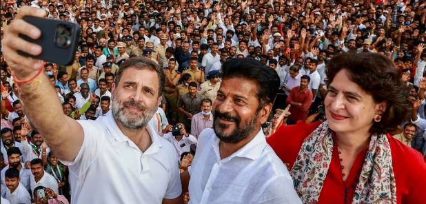 तेलंगाना विधानसभा चुनाव में कांग्रेस को पूर्ण बहुमत मिल गया है. इस राज्य में पहली बार कांग्रेस 64 सीटें जीतकर सरकार बना रही है, जबकि केसीआर की पार्टी बीआरएस को 39 सीटें और बीजेपी को 8 सीटें मिली हैं. कांग्रेस आलाकमान ने बुधवार को तेलंगाना के मुख्यमंत्री पद के लिए रेवंत रेड्डी के नाम की घोषणा की। तेलंगाना की राज्यपाल तमिलिसाई सुंदरराजन आज दोपहर 1.04 बजे हैदराबाद के एलबी स्टेडियम में रेवंत रेड्डी को मुख्यमंत्री पद की शपथ दिलाएंगी। देश के पांच राज्यों में विधानसभा चुनाव के नतीजे आ गए हैं. भारतीय जनता पार्टी ने तीन राज्यों मध्य प्रदेश, राजस्थान और छत्तीसगढ़ में सरकार बना ली है, जबकि कांग्रेस ने तेलंगाना और जेडपीएम ने मिजोरम में जीत हासिल की है। भाजपा आलाकमान ने अभी तक तीन राज्यों के लिए मुख्यमंत्रियों के नाम की घोषणा नहीं की है, लेकिन कांग्रेस आलाकमान ने तेलंगाना का प्रभार रेवंत रेड्डी को सौंप दिया है। रेवंत रेड्डी आज मुख्यमंत्री पद की शपथ लेंगे.