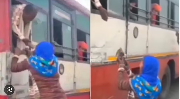 वायरल वीडियो में देखा जा सकता है कि यूपी रोडवेज की बसें लगाई जा रही हैं. वीडियो में देखा जा सकता है कि महिला बस की पिछली सीट की खिड़की से अंदर बैठे शख्स को कुछ चीजें दे रही है, यहां तो सब ठीक लग रहा है लेकिन आगे क्या होगा इसकी आप कल्पना भी नहीं कर सकते.वीडियो में एक महिला को खिड़की से बस में घुसते हुए साफ देखा जा सकता है. अगर कोई महिला गलती करती है तो नुकसान का कोई खतरा नहीं होता. लेकिन इसके बाद भी महिला बस में चढ़ गई. यह वायरल वीडियो कहां का है इसकी जानकारी सामने नहीं आई है, इसलिए न्यूज नेशन इस वीडियो की पुष्टि नहीं करता है.