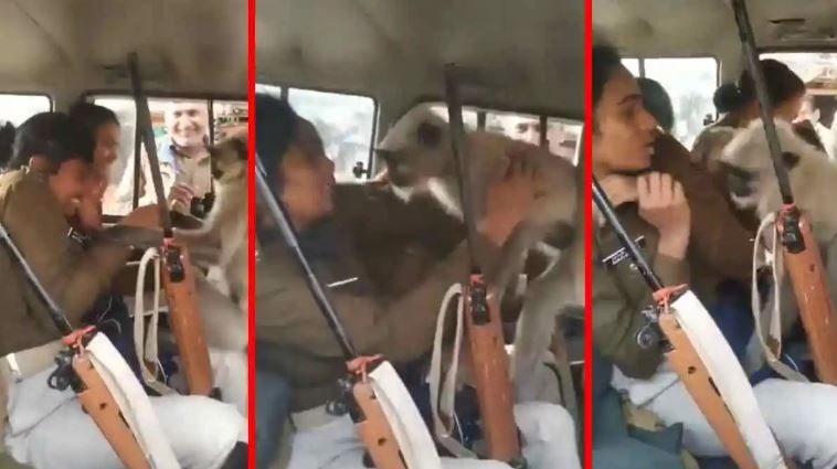 सोशल मीडिया पर एक वीडियो वायरल हो रहा है जिसमें एक बंदर पुलिस की गाड़ी में घुसकर महिला कांस्टेबल को परेशान कर रहा है. वीडियो में देखा जा सकता है कि बंदर गाड़ी में घुस गया है और महिला कांस्टेबल को परेशान कर रहा है. वहीं एक अन्य महिला कांस्टेबल भी वहां बैठी है, लेकिन बंदर बीच-बीच में उसे भी परेशान कर रहा है. बाहर खड़ा दूसरा पुलिसकर्मी हंस रहा है. उनमें से कुछ लोग बंदर को बाहर निकालने की कोशिश कर रहे हैं। एक बंदर काफी देर तक एक महिला के साथ रहा और उसे परेशान करता रहा.
