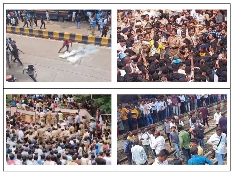 पुलिस ने ठाणे के बदलापुर रेलवे ट्रैक से प्रदर्शनकारियों को हटाने के लिए लाठीचार्ज किया। इसके चलते प्रदर्शनकारियों ने पथराव किया। पुलिस ने रेलवे स्टेशन को अपने कब्जे में ले लिया है। पुलिस ने भीड़ पर काबू पाने के लिए प्रदर्शनकारियों पर लाठीचार्ज किया। पुलिस पर भी पथराव हुआ है। दूसरी तरफ लोगों ने स्कूल के अंदर घुसकर प्रदर्शन और तोड़फोड़ की। आरोपियों के खिलाफ सख्त कार्रवाई की मांग की। लोगों के विरोध-प्रदर्शन की वजह से कल्याण- बदलापुर लोकल ट्रेन सर्विस ठप पड़ी है। कई संगठनों ने आज विरोध में बदलापुर बंद का ऐलान किया है।