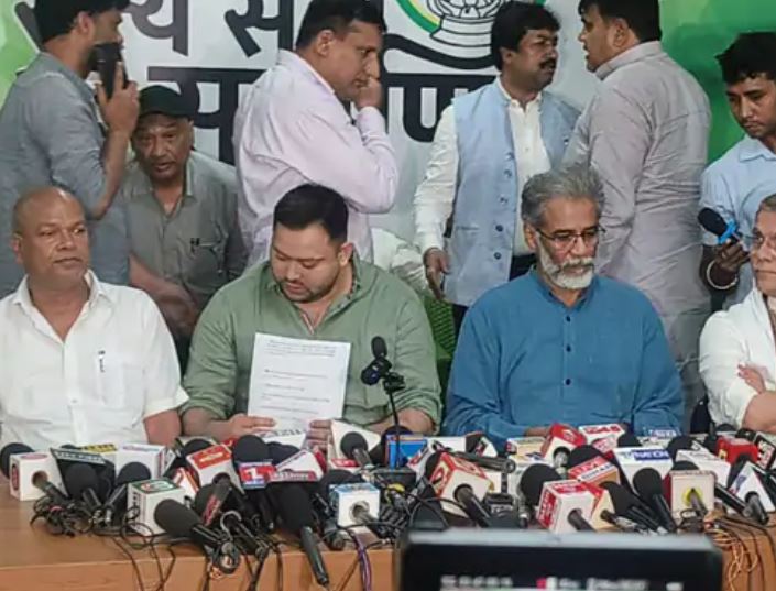 उन्होंने आरोप लगाया कि 90 प्रतिशत बूथ लेवल ऑफिसर्स को अभी तक मतदाता सूची की कॉपी तक उपलब्ध नहीं कराई गई है। तेजस्वी ने यह भी कहा कि सरकार सूची से नाम काटेगी और फिर ऐसे लोगों का राशन और पेंशन तक बंद कर देगी। साथ ही उन्होंने पूछा कि गरीब लोग आयोग द्वारा मांगे जा रहे दस्तावेज कहां से लाएंगे, जब उनका आधार और मनरेगा कार्ड भी मान्य नहीं किया जा रहा। तेजस्वी ने संविधान को लेकर दिए गए एक आरएसएस नेता के हालिया बयान का भी ज़िक्र किया और पूछा कि चुनाव से ठीक पहले मतदाता सूची में बदलाव का क्या औचित्य है। उन्होंने दावा किया कि बिहार के कुल 8 करोड़ मतदाताओं में से लगभग 4 करोड़ 76 लाख लोगों को अपनी नागरिकता साबित करनी पड़ेगी। उन्हें तीन समूहों में बांटा गया है—18 से 20 वर्ष के युवाओं को अपने माता-पिता की नागरिकता सिद्ध करनी होगी, 20 से 38 वर्ष के लोगों को भी यही करना होगा, और तीसरा समूह 39 से 40 वर्ष के लोगों का है, जिन्हें स्वयं की नागरिकता का प्रमाण देना होगा।