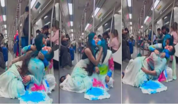 दिल्ली मेट्रो उपद्रवियों की हरकतों पर रोक लगाने में नाकाम साबित हो रही है. दिल्ली मेट्रो में होली से जुड़ा एक नया वायरल वीडियो एक बार फिर चर्चा में आ गया है. इस वीडियो में, दो लड़कियों को अनुचित व्यवहार करते हुए, होली का बहाना बनाकर, मेट्रो के फर्श पर बैठकर फिल्मी गानों पर नाचते हुए देखा जा सकता है।वीडियो में सफेद साड़ी और सूट पहने दो लड़कियां मेट्रो के अंदर अभद्र तरीके से एक-दूसरे को रंग लगाती नजर आ रही हैं. साथ ही उनके सामने एक कपड़े के टुकड़े पर ढेर सारा गुलाल रखा हुआ है.