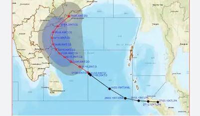 3 दिसंबर तक चक्रवात दक्षिण-पश्चिमी बंगाल की खाड़ी में होगा. पूर्वानुमानों से संकेत मिलता है कि चक्रवाती विक्षोभ उत्तर-पश्चिम की ओर बढ़ेगा, जो 4 दिसंबर की सुबह तक दक्षिण आंध्र प्रदेश और निकटवर्ती उत्तरी तमिलनाडु तट के पास पहुंचेगा। इस सिस्टम के लगभग उत्तर की ओर बढ़ने की उम्मीद है, जो दक्षिणी आंध्र प्रदेश तट के समानांतर और उसके करीब चलेगा। 5 दिसंबर की दोपहर तक नेल्लोर और मछलीपट्टनम के बीच भूस्खलन की आशंका है. उस समय चक्रवाती तूफान की अधिकतम गति 80-90 किमी प्रति घंटे और हवा की गति 100 किमी प्रति घंटे होने की आशंका है। आईएमडी बुलेटिन के मुताबिक, तूफान की स्थिति चेन्नई से 630 किमी पूर्व-दक्षिणपूर्व, नेल्लोर से 740 किमी दक्षिणपूर्व, बापटला से 810 किमी दक्षिणपूर्व और मछलीपट्टनम से 800 किमी दक्षिण-दक्षिणपूर्व में है.