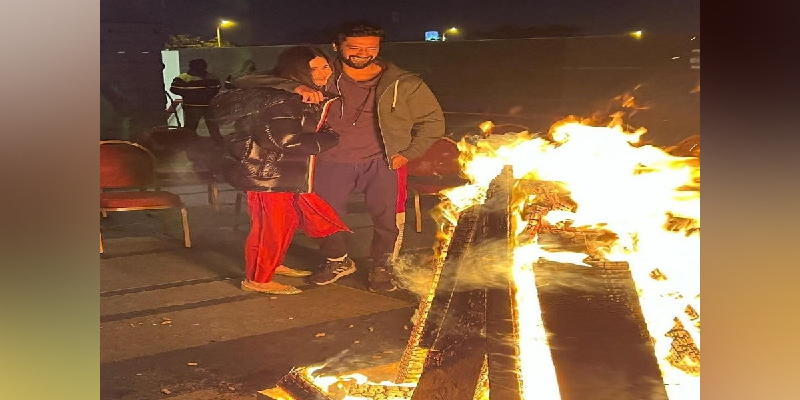कैटरीना ने अपनी इंस्टाग्राम कहानियों में कुछ तस्वीरें भी साझा कीं, जहां उन्हें अलाव के सामने खड़े होकर विक्की को गले लगाते हुए देखा जा सकता है।