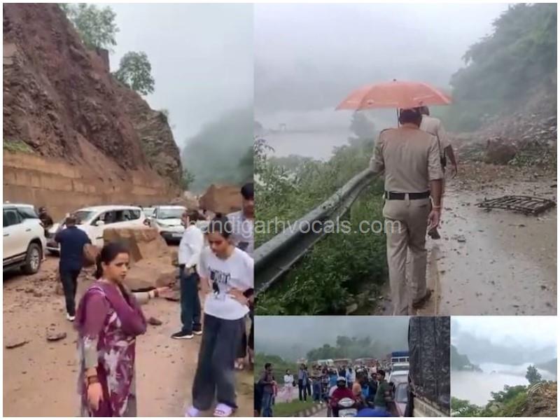 चंडीगढ़ न्यूज डेस्क: हिमाचल प्रदेश में लगातार हो रही बारिश ने यातायात व्यवस्था को बुरी तरह प्रभावित कर दिया है। चंडीगढ़–कीरतपुर–मनाली नेशनल हाईवे दो जिलों में बंद हो गया है। मंडी के पंडोह और बिलासपुर के जगातखाना के पास भूस्खलन और पत्थर गिरने से सड़क अवरुद्ध हो गई है, जिसके कारण दोनों ओर गाड़ियों की लंबी कतारें लग गई हैं। फिलहाल बसों और गाड़ियों को पुराने स्वारघाट मार्ग से डायवर्ट किया जा रहा है, लेकिन पंडोह में हाईवे खोलने में काफी समय लग सकता है।