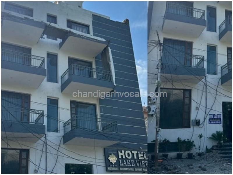 चंडीगढ़ न्यूज डेस्क: चंडीगढ़ के किशनगढ़ इलाके में उस वक्त हड़कंप मच गया जब एक निजी होटल का छज्जा भरभराकर गिर पड़ा। यह हादसा होटल लेक व्यू की तीसरी मंजिल पर हुआ, जहां छज्जा लोहे की ग्रिल समेत नीचे गिरा। गनीमत रही कि इस दौरान कोई व्यक्ति इसकी चपेट में नहीं आया, वरना बड़ा हादसा हो सकता था। हालांकि नीचे खड़ी एक कार और एक साइकिल को नुकसान जरूर हुआ है।