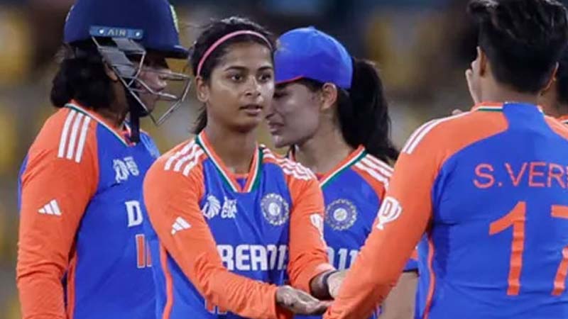 दीप्ति शर्मा (3/20) भारत की शीर्ष गेंदबाज रहीं, साथ ही श्रेयंका पाटिल (2/14) और रेणुका सिंह (2/14) ने भी बेहतरीन प्रदर्शन किया। पूजा वस्त्रकार ने भी दो विकेट लिए। रन चेज में भारत ने शेफाली वर्मा (29 गेंदों में छह चौकों और एक छक्के की मदद से 40 रन) और स्मृति मंधाना (31 गेंदों में नौ चौकों की मदद से 45 रन) के बीच 85 रनों की साझेदारी के साथ अच्छी शुरुआत की। भारत ने बीच में कुछ विकेट गंवाए लेकिन समय रहते संभलकर 35 गेंदें शेष रहते सात विकेट से मैच जीत लिया।