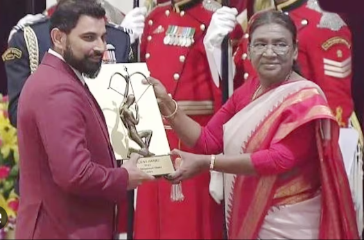 राष्ट्रपति द्रौपदी मुर्मू ने दिल्ली के राष्ट्रपति भवन में राष्ट्रीय पुरस्कार समारोह की मेजबानी की। इस पुरस्कार समारोह में देशभर के कई खिलाड़ियों को उनके अच्छे प्रदर्शन के लिए सम्मानित किया गया है. कई पुरस्कार ऐसे खिलाड़ियों को दिए गए हैं जो अपने दम पर टीम को ऊंचाइयों तक नहीं ले गए, बल्कि ऐसे खिलाड़ी जिन्होंने अपने दम पर टीम को कई मैच जिताए। इन खिलाड़ियों में भारतीय तेज गेंदबाज मोहम्मद शमी भी शामिल हैं. राष्ट्रपति द्रौपदी मुर्मू ने मोहम्मद शमी को अर्जुन पुरस्कार से सम्मानित किया.