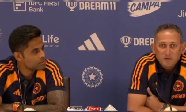 एशिया कप 2025 को लेकर टीम इंडिया के चीफ सेलेक्टर अजीत अगरकर और कप्तान सूर्यकुमार यादव ने एक साझा प्रेस कॉन्फ्रेंस कर 15 सदस्यीय भारतीय टीम की घोषणा की। इस बार शुभमन गिल को उपकप्तानी की जिम्मेदारी दी गई है। युवा खिलाड़ियों से भरी इस टीम को लेकर कई अहम सवाल पूछे गए, लेकिन प्रेस कॉन्फ्रेंस का माहौल उस वक्त बदल गया जब एक रिपोर्टर ने भारत-पाकिस्तान मैच पर सवाल पूछ लिया।