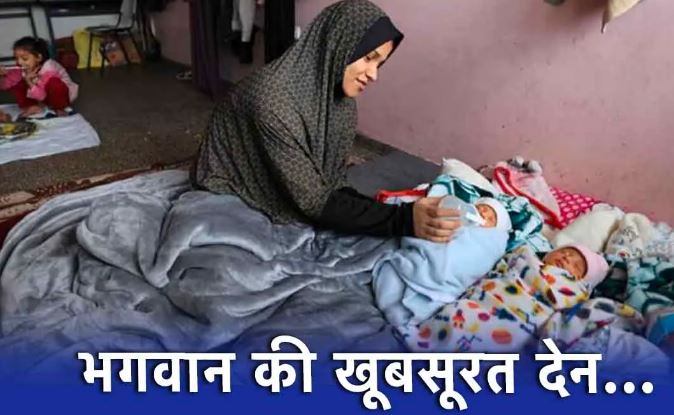 इसे कुदरत का करिश्मा कहें या किस्मत... एक तरफ जंग के हालात, गोलीबारी और बमबारी, दूसरी तरफ लाशें, रोते-बिलखते लोग, इन सबके बीच दुनिया में आ रही थीं 4 नई जिंदगियां। यह एक ऐसी महिला की कहानी है जो हमला होने पर अपनी जान बचाने के लिए अपने तीन बच्चों के साथ घर से भाग जाती है। वह गर्भवती थी, कोई उपकरण नहीं था और कोई रिश्तेदार नहीं था, बिना यह सोचे कि वह कहाँ जाएगी, वह लगभग 5 किलोमीटर पैदल चली। जब वह अंततः दक्षिणी गाजा पहुंची, तो प्रसव पीड़ा शुरू हो गई। किसी तरह बच्चों ने अन्य महिलाओं को बुलाया, जिन्होंने बच्चों को जन्म देने में उनकी मदद की। 4 बच्चे थे, 2 लड़कियाँ और 2 लड़के। महिला अपने बच्चों के साथ शरणार्थी शिविर में है.