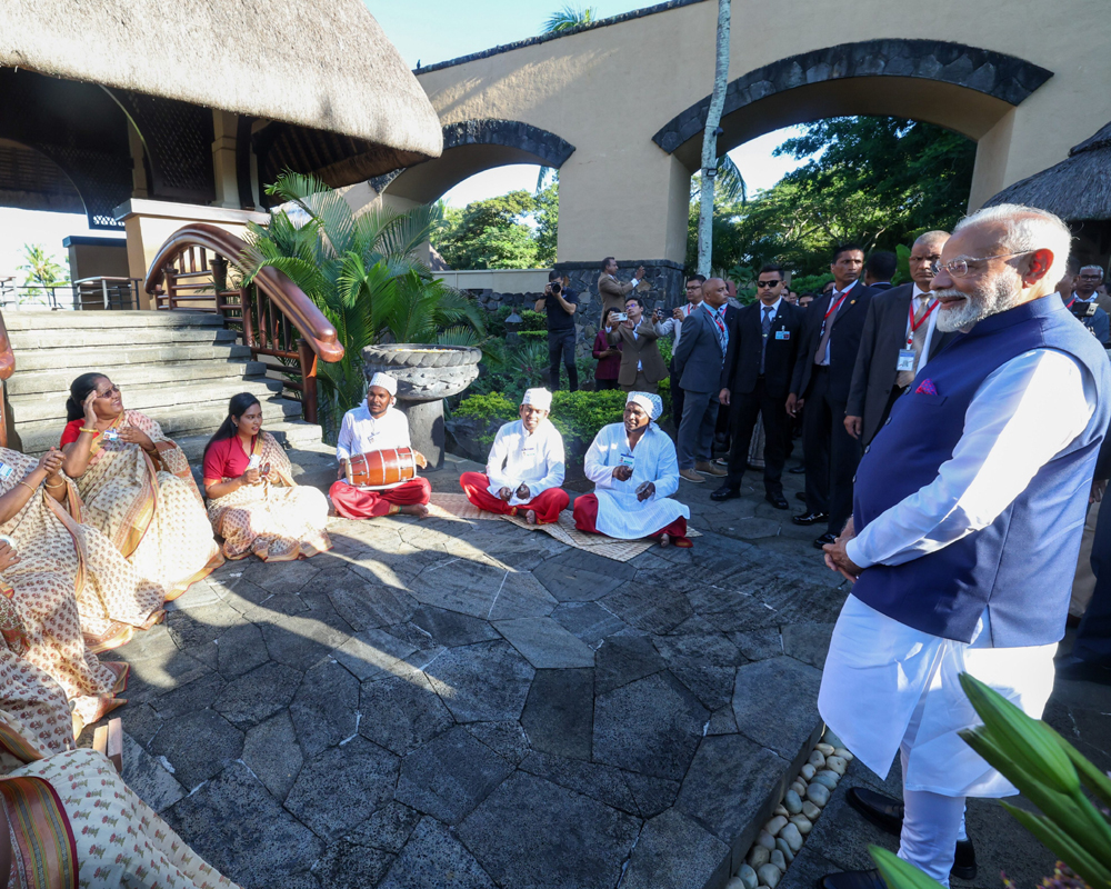 प्रधानमंत्री नरेंद्र मोदी का मंगलवार को मॉरीशस में भारतीय समुदाय द्वारा गर्मजोशी से स्वागत किया गया, जहां समुदाय की महिलाओं ने गीत गावई नामक पारंपरिक बिहारी सांस्कृतिक प्रस्तुति के माध्यम से उनका सम्मान किया। गीत गावई एक पारंपरिक भोजपुरी संगीत समूह है जो भारत के भोजपुरी क्षेत्र की महिलाओं द्वारा मॉरीशस में लाई गई समृद्ध सांस्कृतिक विरासत को दर्शाता है। मोदी ने एक्स पर पोस्ट किया, "मॉरीशस में भारतीय समुदाय द्वारा गर्मजोशी से किए गए स्वागत से मैं अभिभूत हूं। भारतीय विरासत, संस्कृति और मूल्यों से उनका गहरा जुड़ाव वास्तव में प्रेरणादायक है। इतिहास और दिल का यह बंधन पीढ़ियों से फलता-फूलता आ रहा है।"