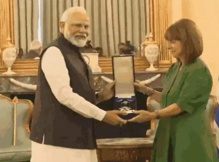 मुंबई, 25 अगस्त, (न्यूज़ हेल्पलाइन)। प्रधानमंत्री नरेंद्र मोदी एक दिन के दौरे पर ग्रीस में हैं। वहां, राष्ट्रपति कैटरीना सकेलारोपोउलो ने PM मोदी को सेरिमोनियल वेलकम दिया। उन्हें ग्रीस के दूसरे सर्वोच्च सम्मान 'ग्रैंड क्रॉस ऑफ द ऑर्डर ऑफ ऑनर' से सम्मानित किया गया। मोदी ने कहा, मैं इस सम्मान के लिए राष्ट्रपति, ग्रीस की सरकार और लोगों को धन्यवाद देता हूं। यह ग्रीस के लोगों का भारत के प्रति आदर भाव दर्शाता है। ग्रीस के प्रधानमंत्री ने कहा, मोदी मेरे दोस्त हैं। कहा जाता है कि 1+1 = 11 भी होते हैं। यहां हम दोनों देशों के बीच दोस्ती की मिसाल कायम करना चाहते हैं। एक देश अगर दुनिया की सबसे बड़ी डेमोक्रेसी है तो दूसरा दुनिया का पहला लोकतंत्र। चंद्रयान-3 मिशन की कामयाबी के लिए भारत को बधाई। इसके बाद प्रधानमंत्री मोदी ने कहा- दोनों देशों के बीच ऐतिहासिक रिश्ते हैं। आज वक्त की जरूरत के मुताबिक- हम डिफेंस, सिक्योरिटी, इन्फ्रास्ट्रक्चर, एजुकेशन और स्किल डेवलपमेंट जैसे अहम सेक्टर्स में साथ काम कर सकते हैं। दोनों देशों के बीच NSA लेवल की बातचीत भी शुरू होगी।