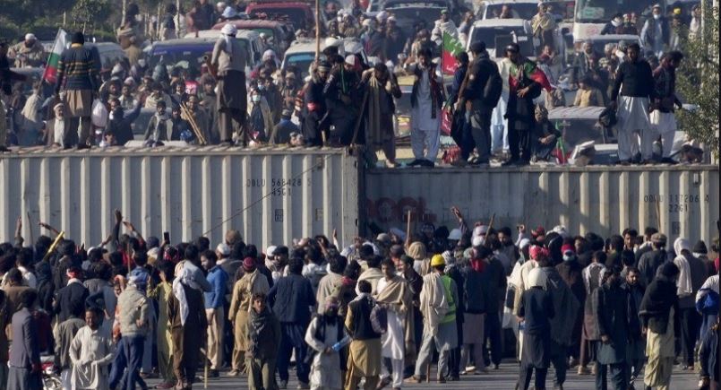 जेल में बंद पूर्व प्रधानमंत्री इमरान खान के समर्थकों का विरोध प्रदर्शन घातक होने के बाद मंगलवार को पाकिस्तान में हिंसा भड़क गई, जिसमें छह सुरक्षाकर्मियों की मौत हो गई और 100 से अधिक घायल हो गए। स्थिति बिगड़ने पर संघीय सरकार ने इस्लामाबाद में सेना तैनात कर दी और देखते ही गोली मारने के आदेश जारी कर दिए। खान की पाकिस्तान तहरीक-ए-इंसाफ (पीटीआई) पार्टी द्वारा आयोजित विरोध प्रदर्शन का उद्देश्य उनकी रिहाई और अन्य राजनीतिक मांगों के लिए सरकार पर दबाव बनाना था।