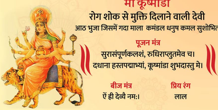 शारदीय नवरात्रि का पावन पर्व चल रहा है। सनातन धर्म में नवरात्रि पर शक्ति की साधना का बहुत महत्व है। नवरात्रि के चौथे दिन देवी दुर्गा के कुष्मांडा स्वरूप की पूजा करने का विधान है, जिनकी पूजा से साधक के जीवन से जुड़ी सभी कठिनाइयां दूर हो जाती हैं और उसकी मनोकामनाएं पूरी होती हैं। इनका निवास स्थान सौर मंडल के आंतरिक भाग में स्थित है। सूर्य लोक में निवास करने की क्षमता और शक्ति केवल इन्हीं में है।