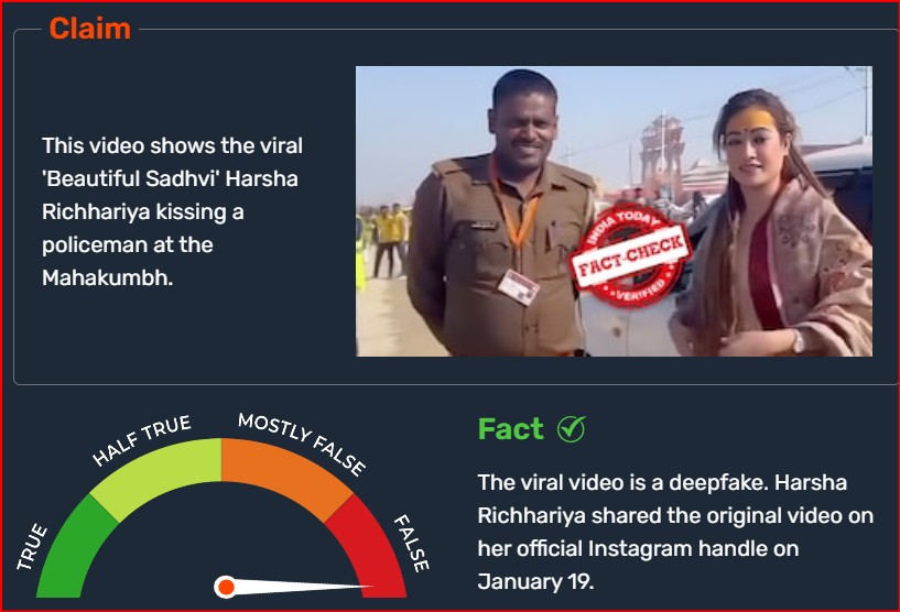 Fact Check: महाकुंभ से वायरल हुआ हर्षा रिछारिया का फेक वीडियो, पड़ताल में निकला AI जनरेटेड
