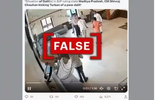 सोशल मीडिया पर सीसीटीवी फुटेज का एक वीडियो क्लिप वायरल हो रहा है जिसमें एक बुजुर्ग व्यक्ति अपनी पगड़ी को लात मारते हुए दिख रहा है। इस वीडियो को शेयर करते हुए दावा किया जा रहा है कि इसमें मध्य प्रदेश के पूर्व मुख्यमंत्री शिवराज सिंह चौहान एक दलित व्यक्ति का अपमान करते नजर आ रहे हैं. हालाँकि, वीडियो 2021 का है और उस व्यक्ति की पहचान राजस्थान के पूर्व विधायक राजेंद्र सिंह बिधूड़ी के रूप में की गई है। हमने पाया कि वायरल वीडियो के ऊपर बाईं ओर तारीख और समय दिखाई दे रहा है, "2021-10-21 13:35:09"।