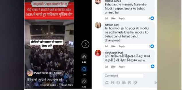 वीडियो में दावा किया गया था कि मोदी सरकार के आदेश पर पाकिस्तानियों की बड़ी संख्या भारत से भाग रही है। इसे सोशल मीडिया पर भारी संख्या में शेयर किया गया, और यह दावा किया गया कि पहलगाम आतंकी घटना के बाद पाकिस्तानियों को वापस भेजा जा रहा है।