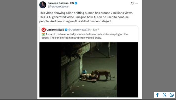 "इस वीडियो को करीब 7 मिलियन बार देखा गया है, जिसमें एक शेर को इंसान को सूंघते हुए दिखाया गया है। लेकिन यह वीडियो AI द्वारा बनाया गया है। ज़रा सोचिए, जब AI अभी सिर्फ शुरुआती स्तर पर है और तब भी लोगों को भ्रमित कर सकता है, तो आगे इसका दुरुपयोग कितना खतरनाक हो सकता है।"