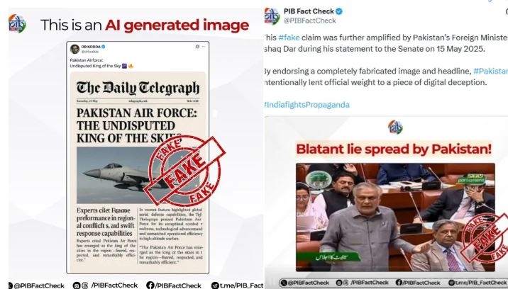 इस फर्जी फोटो के जरिए पाकिस्तान यह दिखाने की कोशिश कर रहा था कि उसकी वायु सेना ने भारत पर बढ़त हासिल की है। यहां तक कि पाकिस्तान के विदेश मंत्री इशाक डार ने भी 15 मई को सीनेट में इस कथित रिपोर्ट का हवाला देते हुए भारत के खिलाफ बयान दिया। इससे ये साफ हो गया कि पाकिस्तान अब प्रोपेगेंडा युद्ध लड़ने की कोशिश कर रहा है, क्योंकि मैदान में उसे करारी हार मिली है।