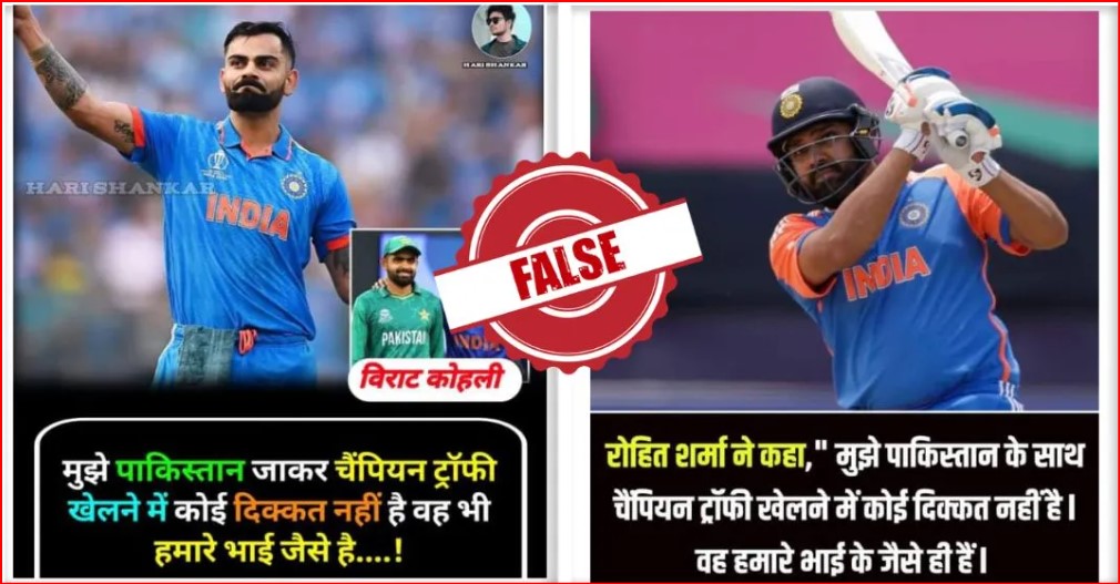 फैक्ट चेक न्यूज डेस्क !!! सोशल मीडिया पर भारतीय क्रिकेट टीम के कप्तान रोहित शर्मा और दिग्गज बल्लेबाज विराट कोहली के नाम एक पोस्ट वायरल हो रही है. इस पोस्ट के मुताबिक, विराट और रोहित ने चैंपियंस ट्रॉफी 2025 के लिए पाकिस्तान जाने का समर्थन किया है. हरि शंकर कुशवाह नाम के एक फेसबुक यूजर ने लिखा- ''विराट कोहली ने कहा कि मुझे चैंपियंस ट्रॉफी खेलने के लिए पाकिस्तान जाने में कोई आपत्ति नहीं है, वह भी हमारे भाई की तरह हैं...'' वहीं, फेसबुक यूजर सचिन चौहान ने लिखा- ''रोहित शर्मा उन्होंने कहा, "मुझे पाकिस्तान के साथ चैंपियंस ट्रॉफी खेलने में कोई दिक्कत नहीं है. वह हमारे भाई जैसे हैं."