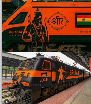 सोशल मीडिया पर कुछ यूज़र्स ने एक तस्वीर शेयर की है जिसमें वंदे भारत ट्रेन को भगवा और काले रंग में रंगा हुआ दिखाया गया है। इस ट्रेन पर भगवान राम की तस्वीर के साथ "श्री राम" लिखा हुआ दिखाई दे रहा है। इसके साथ ही यूज़र्स ने भावनात्मक और सांस्कृतिक अपील करते हुए लिखा: