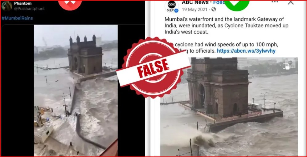 फैक्ट चेक से पता चला है कि गेटवे ऑफ इंडिया पर आई बाढ़ का मुंबई में मौजूदा बारिश से कोई लेना-देना नहीं है। वायरल हो रहा वीडियो साल 2021 का है जब चक्रवात तौकाता आया था। लोगों को ऐसे किसी भी दावे से सावधान रहने की सलाह दी जाती है।