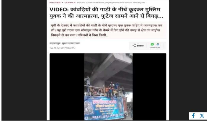 इन दिनों सोशल मीडिया पर गलत सूचनाएं फैलाना बेहद आसान हो गया है। कोई भी व्यक्ति वीडियो या तस्वीरों के साथ झूठा दावा जोड़कर उसे वायरल कर सकता है। इसी कड़ी में एक पुराना वीडियो एक बार फिर चर्चा में है, जिसमें एक युवक को कांवड़ियों के ट्रक के नीचे जानबूझकर आते हुए दिखाया गया है। वीडियो के साथ यह दावा किया जा रहा है कि यह घटना हाल ही की है और उत्तर प्रदेश के सहारनपुर जिले के देवबंद इलाके में हुई है, जहां 'वाहिद' नामक युवक ने जानबूझकर कांवड़ यात्रा के ट्रक के नीचे आकर आत्महत्या कर ली।