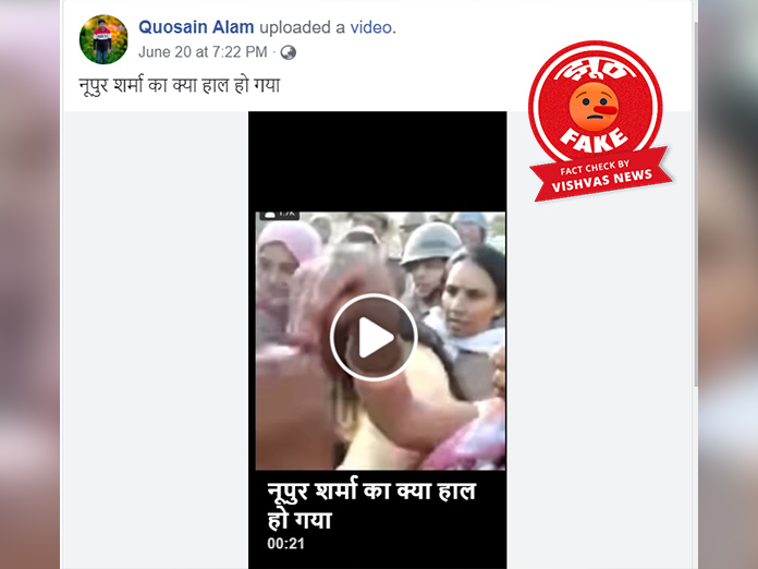 पैगंबर मुहम्मद पर नूपुर शर्मा की विवादास्पद टिप्पणियों के कारण सोशल मीडिया पर कई प्राथमिकी दर्ज की गईं और उनकी गिरफ्तारी की मांग जारी रही। इस बीच कई लोगों ने एक वीडियो शेयर करते हुए दावा किया कि बिल्कुल ऐसा ही हुआ है। वीडियो में महिलाओं और पुलिस के एक छोटे समूह को दिखाया गया है। इस वीडियो के कुछ संस्करण हैं। उनमें से एक व्यक्ति को समानांतर वीडियो में कमेंट्री साबित करते हुए दिखाया गया है, जहां उसने दावा किया कि वायरल क्लिप में शर्मा को फरार होने के बाद गिरफ्तार किया गया है। वीडियो के दूसरे संस्करण में सिर्फ एक वॉयसओवर है जो इसी तरह के दावे करता है। वीडियो में महिला को अन्य महिलाओं द्वारा पकड़े हुए दिखाया गया है क्योंकि वह एक बैरिकेड की ओर आगे बढ़ने की कोशिश करती है। वीडियो में कई पुलिसकर्मी नजर आ रहे थे ।