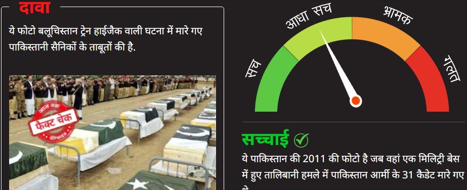 फैक्ट चेक: पाकिस्तानी झंडों में लिपटे ताबूतों की इस तस्वीर का बलूचिस्तान ट्रेन अपहरण से कोई संबंध नहीं है