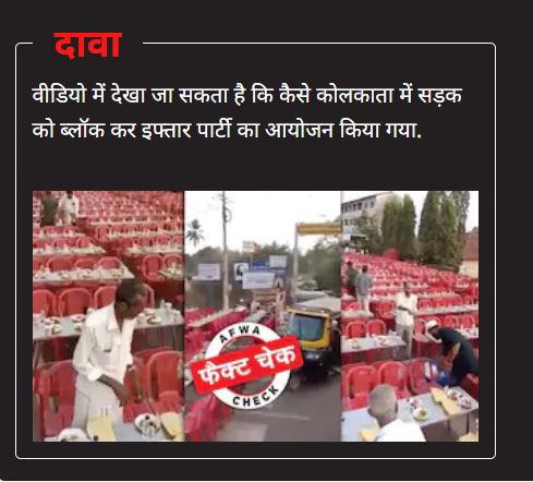 रमजान के बीच सोशल मीडिया पर एक वीडियो वायरल हो रहा है, जिसके जरिए दावा किया जा रहा है कि कोलकाता में सड़क जाम कर इफ्तार पार्टी का आयोजन किया गया.