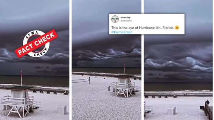 दोस्तों, आजकल एक वीडियो जो सोशल मीडिया पर खूब शेयर किया जा रहा है उसमें देखा जा सकता हैं कि, एक समुद्र तट के पास आकाश में एक लहर के आकार का बादल बन रहा हैं और इस वीडियो को शेयर करके ये कहा जा रहा है कि, ये वीडियो अमेरिका के फ्लोरिडा में तूफान इयान के प्रभाव का हैं । आपकी जानकारी के लिए बता दें कि, तूफान इयान ने 28 सितंबर को फ्लोरिडा के दक्षिण-पश्चिमी तट पर दस्तक दी, जहां कम से कम 21 लोगों के मारे जाने की खबर है । इसके बाद इस वीडियों की सच्चाई का पता लगाने के लिए AFWA ने जांच की तो पाया कि, वायरल वीडियो बिल्कुल हाल का नहीं है।