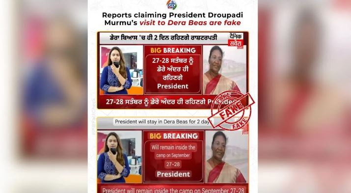 राष्ट्रपति द्रौपदी मुर्मू के 27-28 सितंबर को डेरा ब्यास दौरे की कोई योजना नहीं है।