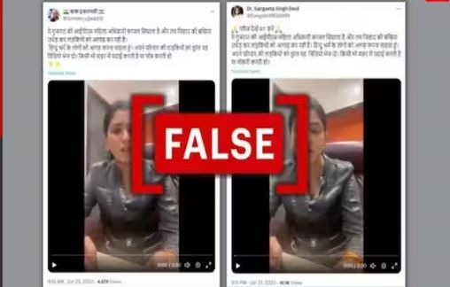 हालाँकि, दावा झूठा है। वायरल वीडियो में दिख रही महिला कोई आईपीएस अधिकारी नहीं, बल्कि एक स्वयंभू हिंदू अधिकार कार्यकर्ता है। वीडियो में 0:34 मिनट पर महिला को यह कहते हुए सुना जा सकता है, “वे शादी के लिए मदरसे से पैसे लेते हैं। धार्मिक गुरु और मौलाना उन्हें ब्राह्मण लड़की से शादी करने के लिए 5-6 लाख रुपये, सिख लड़की से 7 लाख रुपये, जैन लड़की से 8 लाख रुपये और राजपूत लड़की से शादी करने के लिए 6 लाख रुपये देते हैं। वीडियो में महिला ने आगे दावा किया कि मुसलमान हिंदू लड़कियों से जबरन शादी करते हैं और बाद में उन्हें छोड़ देते हैं।