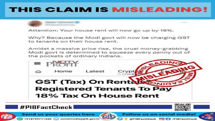 आजकल सोशल मीडिया वायरल खबरों से भरा पड़ा है। इनमें से कुछ खबरों में सच्चाई होती है तो काफी सारी न्यूज फैक भी होती हैं । इसी बीच में आजकल सोशल मीडिया पर एक दावा किया जा रहा हैं जिसमें कहा जा रहा है कि, किराएदारों के लिए हाउस रेंट पर 18 फीसदी जीएसटी लगाया जाएगा । मगर जब पीआईबी की टीम ने इस वायरल मैसेज की सच्चाई का पता लगाया तो पाया कि, ये खबर झूठी हैं । पीआईबी टीम के अनुसार, एक आवासीय इकाई का किराया केवल तभी कर योग्य होता है जब इसे एक वाणिज्यिक इकाई को किराए पर दिया जाता है । निजी इस्तेमाल के लिए लिया गया किराया जीएसटी की श्रेणी में नहीं आता है । फर्म के मालिक या भागीदार द्वारा व्यक्तिगत उपयोग के लिए किराए पर आवास उपलब्ध कराने पर भी कोई जीएसटी नहीं लिया जाता है।