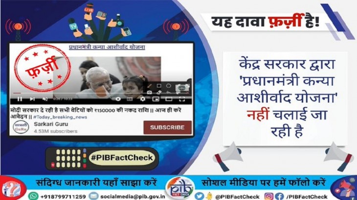 सरकारी गुरु नाम के यूट्यूब चैनल के वीडियो के जरिए दावा किया जा रहा है कि पीएम मोदी की खास योजना के तहत देश की सभी बेटियों को डेढ़ लाख रुपये तक की राशि दी जा रही है और इस योजना का नाम हैं प्रधानमंत्री कन्या आशीर्वाद योजना । आपको बता दें कि, इस यूट्यूब चैनल के माध्यम से आम जनता का ये बताया जा रहा है कि, इस प्रकार आम जनता योजना का लाभ उठा सकती हैं । सोशल मीडिया पर इस वीडियो को काफी लाइक्स मिल रहे हैं. लोग सोशल मीडिया पर वीडियो भी शेयर कर रहे हैं ।